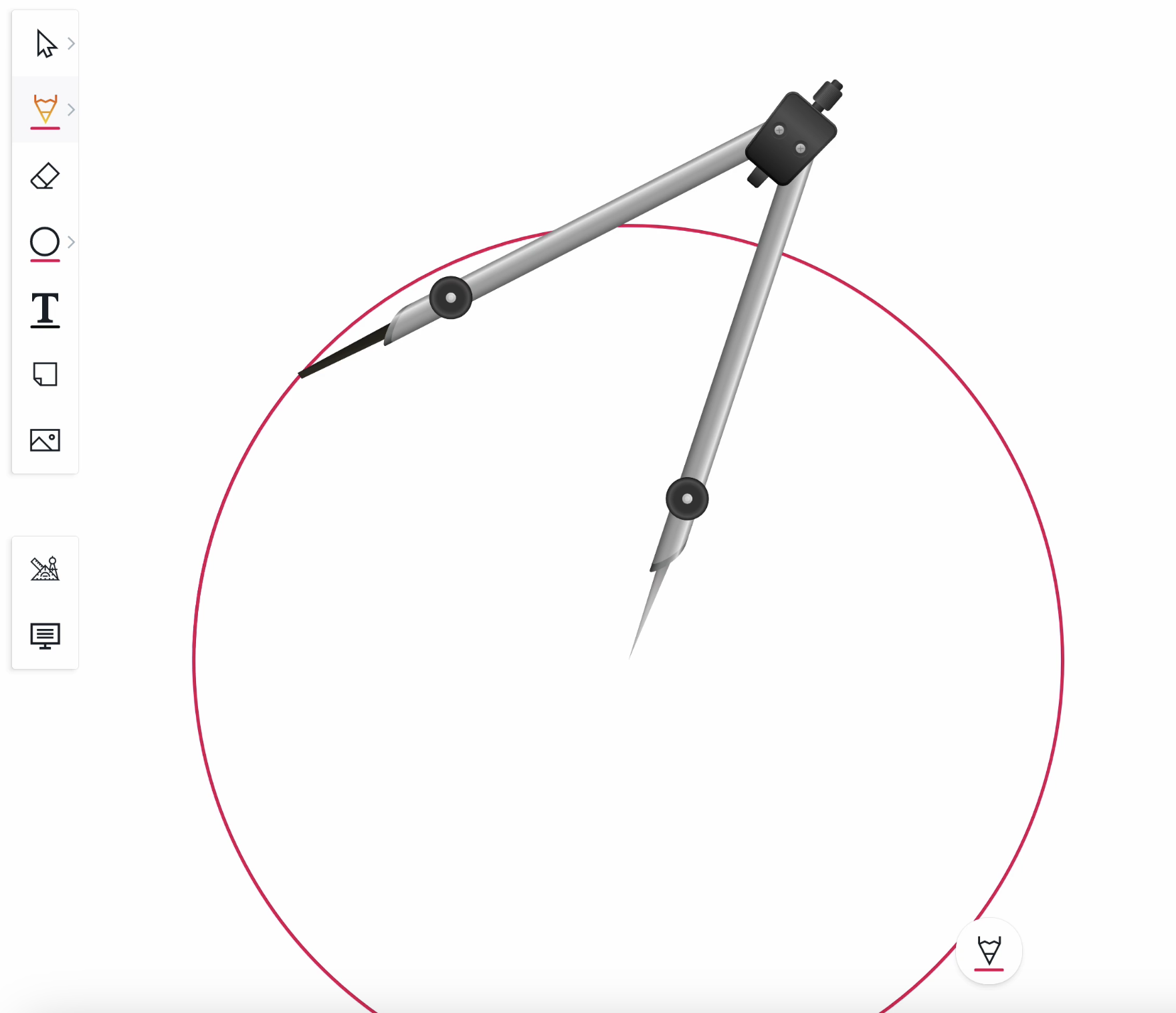 Pour commencer à dessiner, la poignée doit être déplacée. En fonction du résultat souhaité du dessin au compas, il peut être relâché et le compas cessera de dessiner.