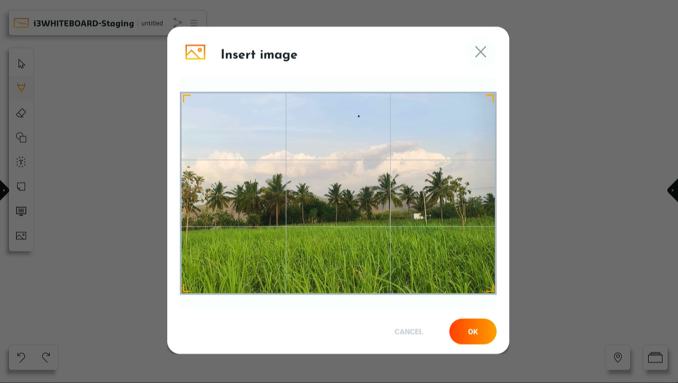 La manière la plus simple d'importer une image sur le tableau est via le menu Outil. Sélectionnez l'icône d'image en bas du menu Outil.
