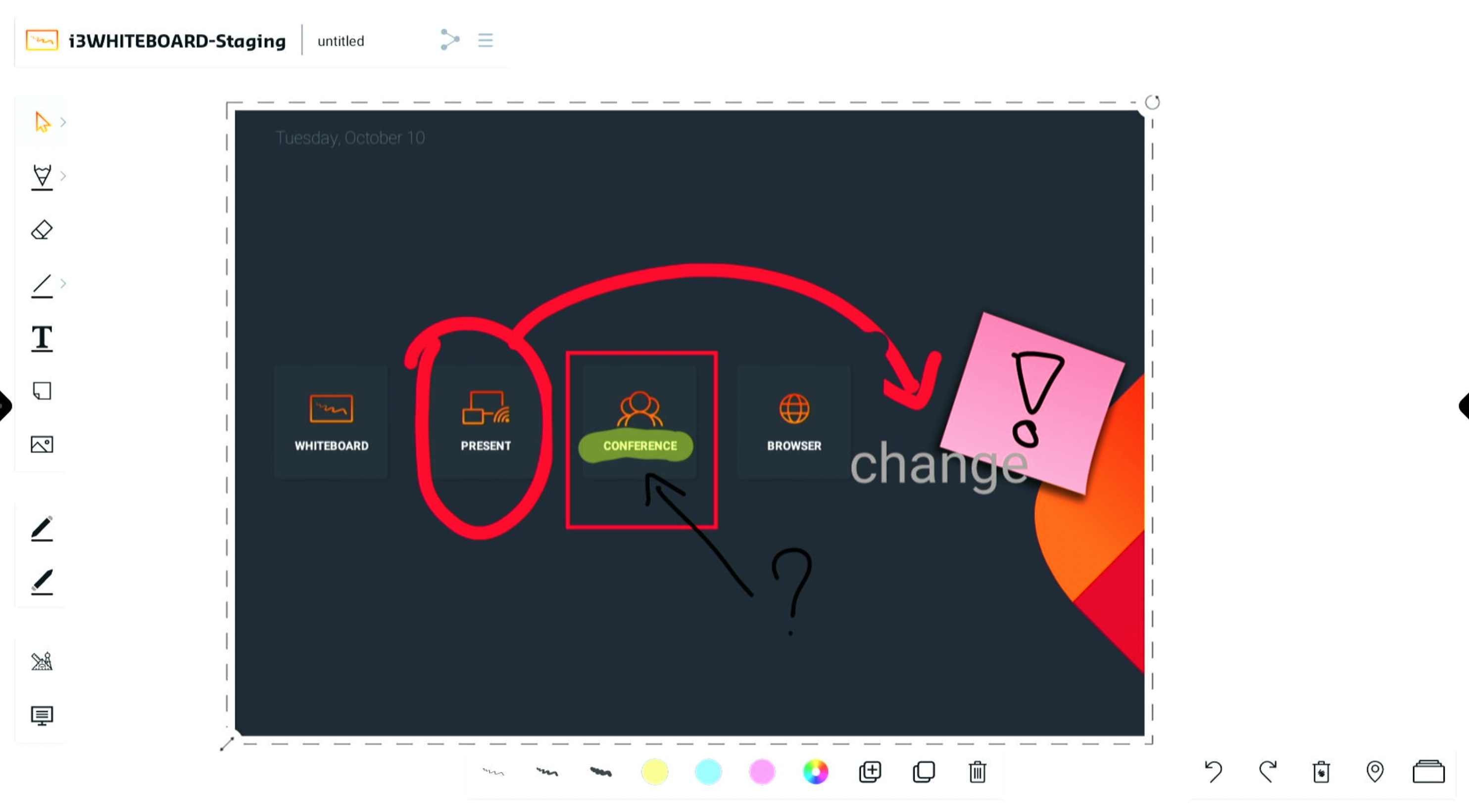 i3ANNOTATE est une fonctionnalité d'extension d'i3WHITEBOARD. De nombreuses fonctionnalités de dessin disponibles dans i3WHITEBOARD le sont également dans i3ANNOTATE. Vous pouvez également utiliser les boutons Annuler et Rétablir comme vous le feriez dans i3WHITEBOARD.